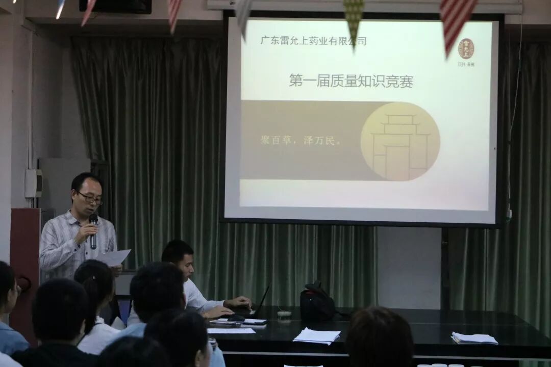 活动最后邀请广东雷允上药业总经理文总总结发言:文总首先肯定了本次活动举行取得的效果及完满成功。鼓励职能部门通过活动,一方面活跃了公司文化氛围,另一方面,在筹备及参赛过程,所有参与的同事均能得到在专业知识方面的提升。最后再次强调““四个最严”(最严谨的标准、最严格的监管、最严厉的处罚、最严肃的问责)”的重要性,并给各部门工作提出明确的要求及目标。